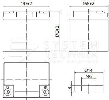 - Срок хранения без подзаряда: 6 мес. при 25°C;