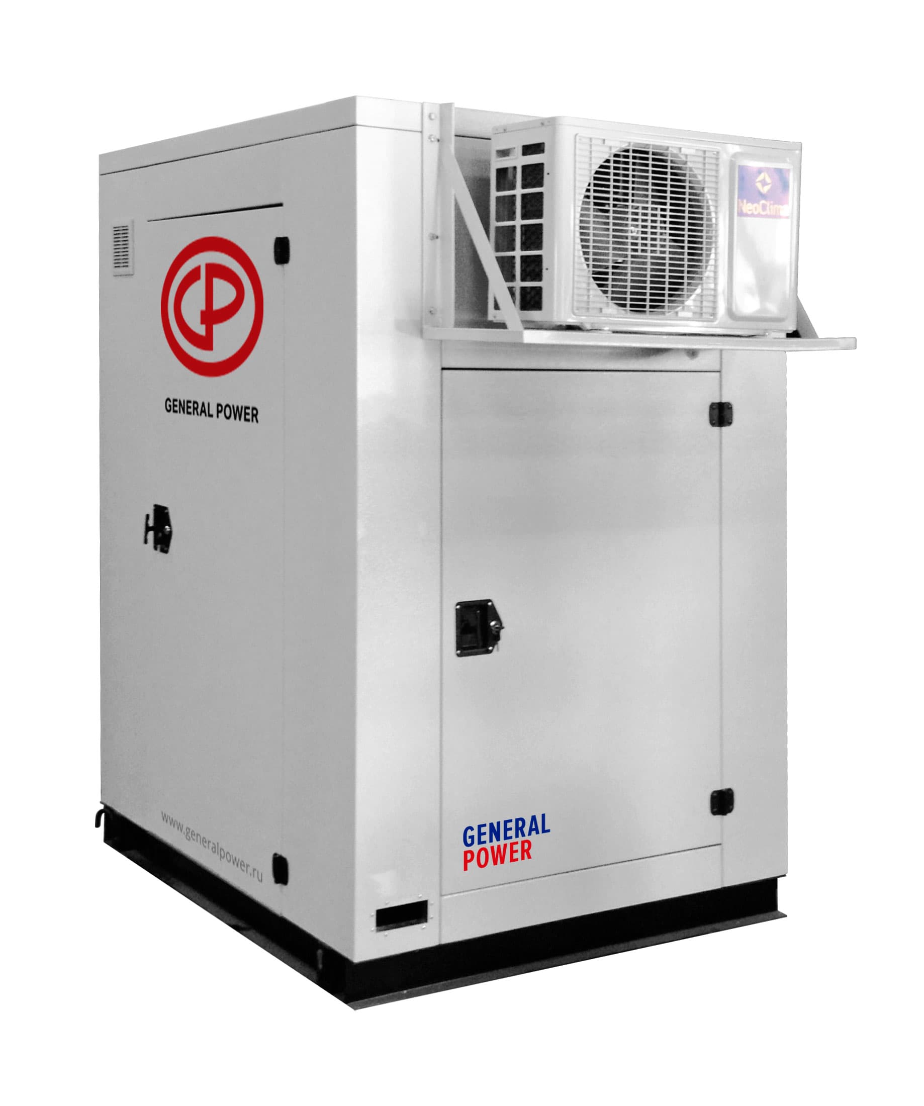 Компактный контейнер надежно защитит электростанцию от неблагоприятных погодных явлений, высокой или низкой температуры и прочих внешних воздействий. Стенки контейнера выполнены из пожаробезопасного нержавеющего материала (толщина 50-100 мм), рассчитанного на колебания температуры воздуха от -50 до +50°С. Жесткий стальной каркас достаточно прочен, чтобы обеспечить полную сохранность оборудования на протяжении длительной эксплуатации. Для доступа обслуживающего персонала в контейнере предусмотрены боковые распашные двери.
