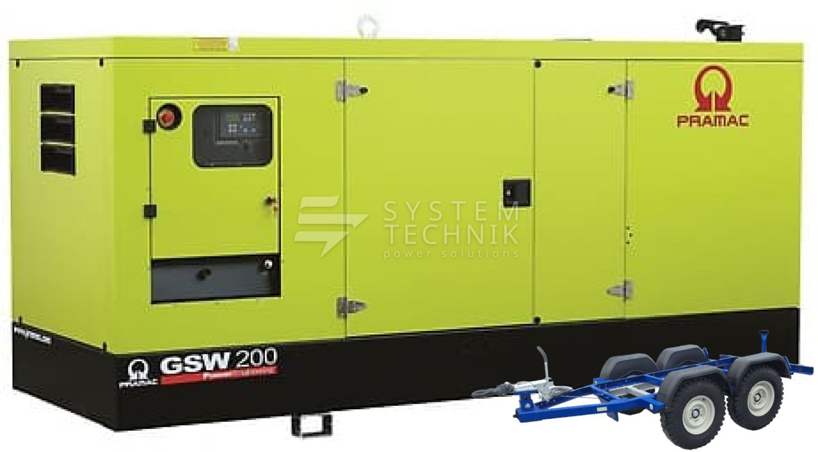 - Дизельный генератор Pramac GSW 200 V 230V 3Ф В кожухе на прицепе