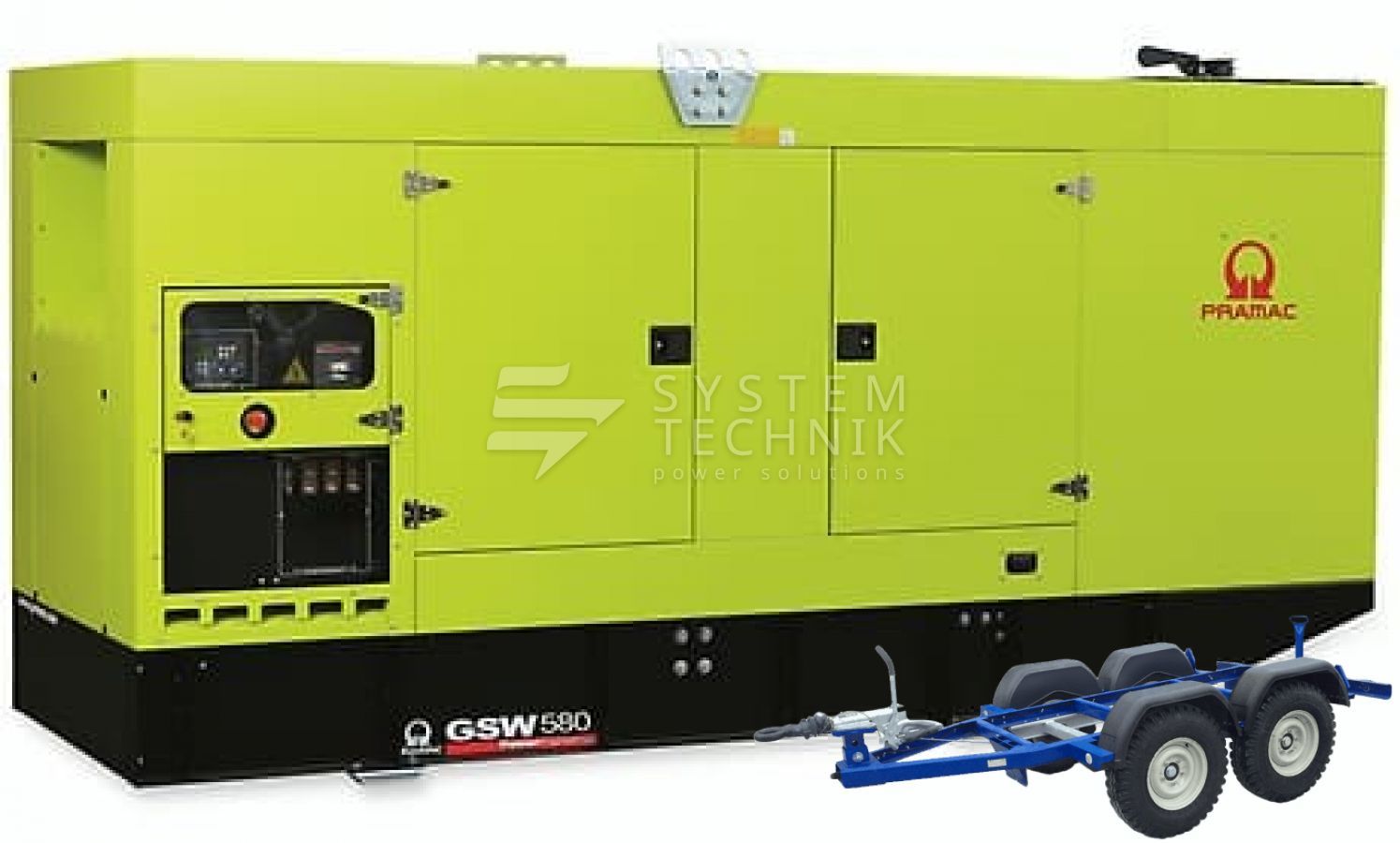 - Дизельный генератор Pramac GSW 580 DO 380V В кожухе на прицепе